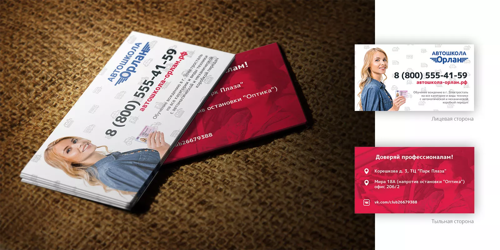 Разработка рекламных визиток автошколы «Орлан» в Малоярославце